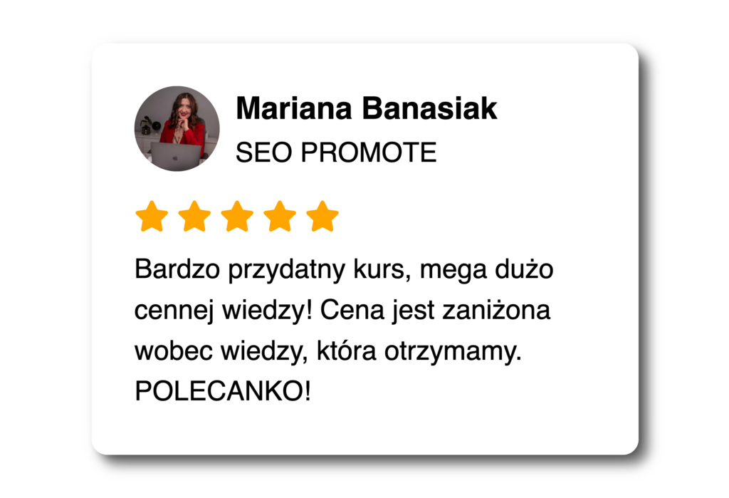 Pracując już teraz jako marketer, podczas kursu możesz realizować zadania bezpośrednio na przykładzie swojej firmy, które następnie możesz wdrożyć w życie jeszcze w trakcie trwania kursu!
