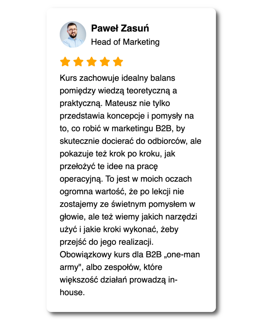 Jeśli już teraz jesteś marketerem w firmie B2B, to nasz kurs pomoże Ci wejść na wyższy poziom.