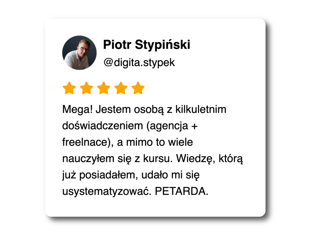 Aby zapewnić każdemu z Uczestników odpowiednio dużo uwagi i wsparcia podczas trwania całego kursu ograniczamy maksymalną liczbę zapisanych osób do 60.
