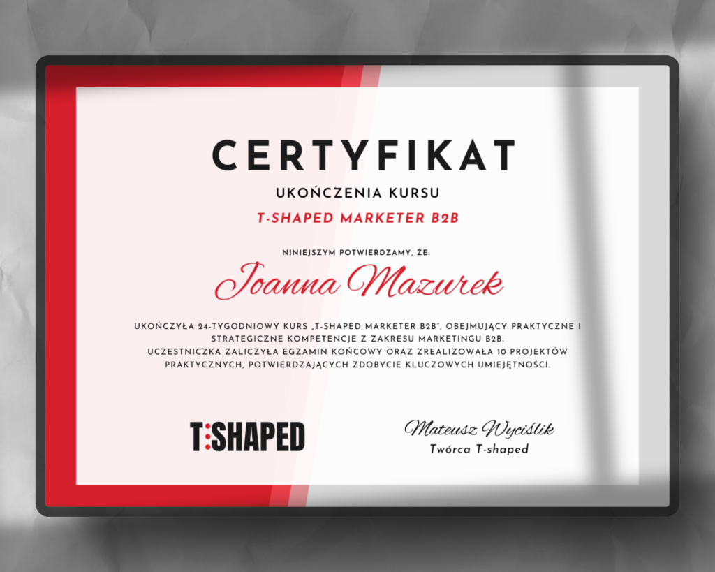 W przeciwieństwie do wielu innych kursów, certyfikat T-shaped nie jest dokumentem, który uzyska każdy.
